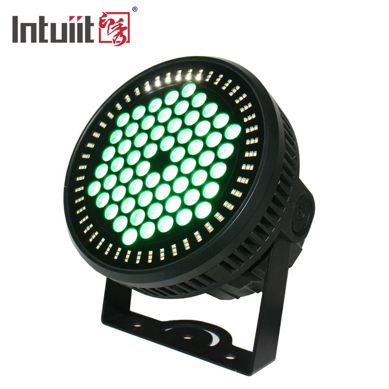 MYLED-131 is very powerful LED parcan in the outdoor product line. The main part is RGBW LED, the round line outside is strobe SMD. So it could be Wash&Strobe effect.